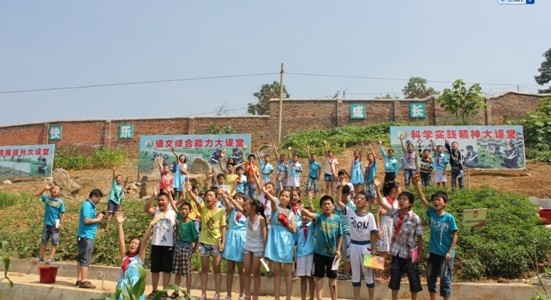 孩子们在蔬菜基地劳作