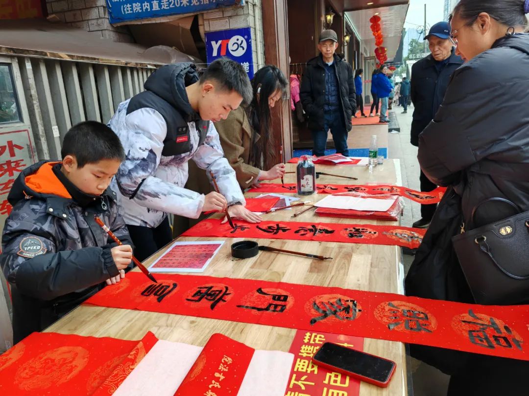 为进一步传承和弘扬中华优秀传统文化,营造健康和谐、积极向上的文化氛围和节日气氛。近日,市图书馆在文化大院里开展“龙腾虎跃迎新春”文化惠民送春联活动,邀请市内书法爱好者为市民写春联,送“福”字、送吉祥,为即将到来的春节送上美好的祝福。